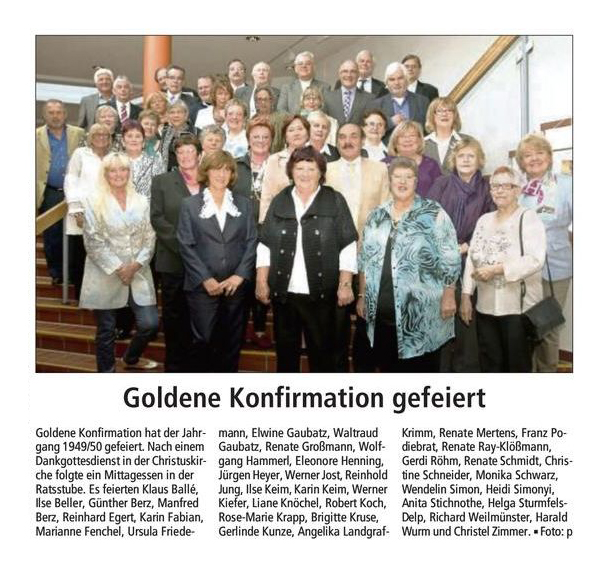 goldene konfirmation 26. Mai 2013 in der evangelischen christuskirche Dietzenbach Mittagessen sowie Kaffee & Kuchen im Restaurant Ratssube |